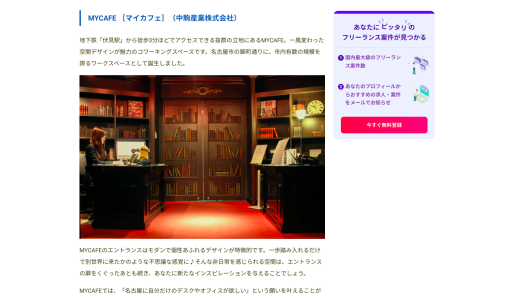 フリーランス案件を提供するプラットフォーム「freelance hub」を運営するレバレジーズ株式会社様より、フリーランス向けのマッチングサイト「フリーランスハブ」で、MYCAFE紹介されました。 […]