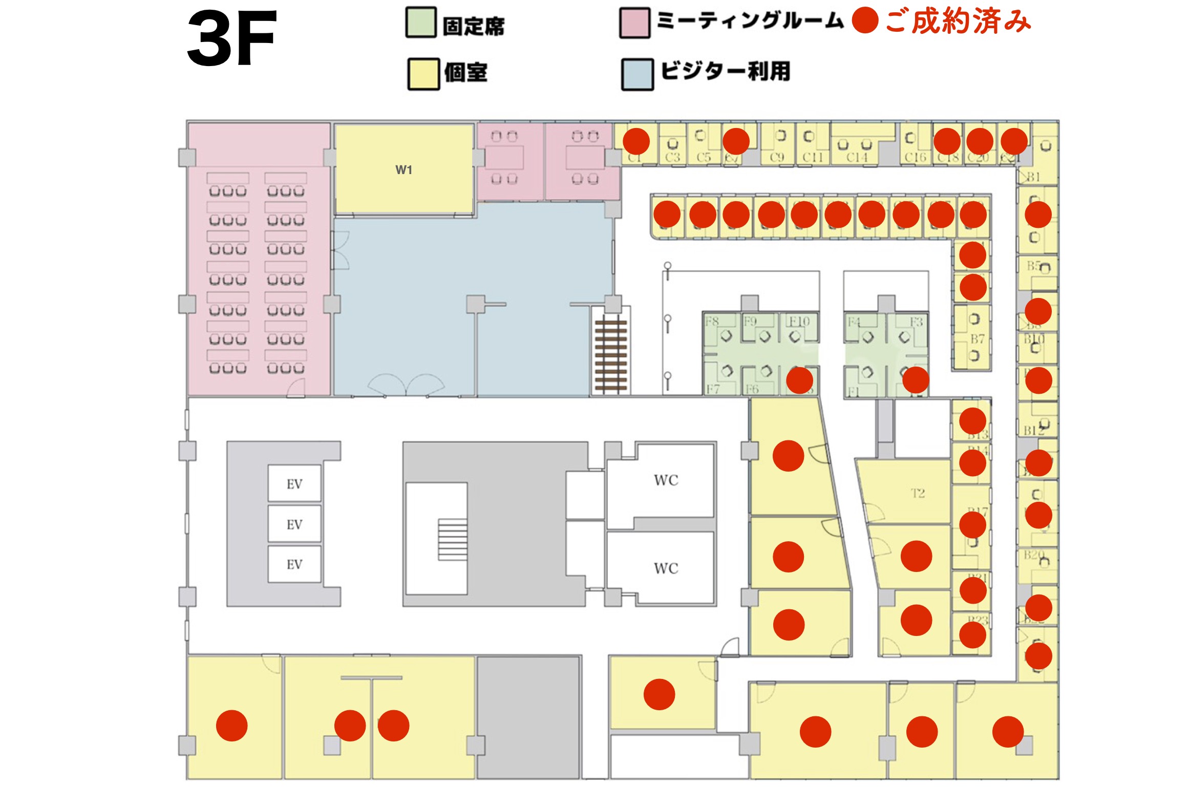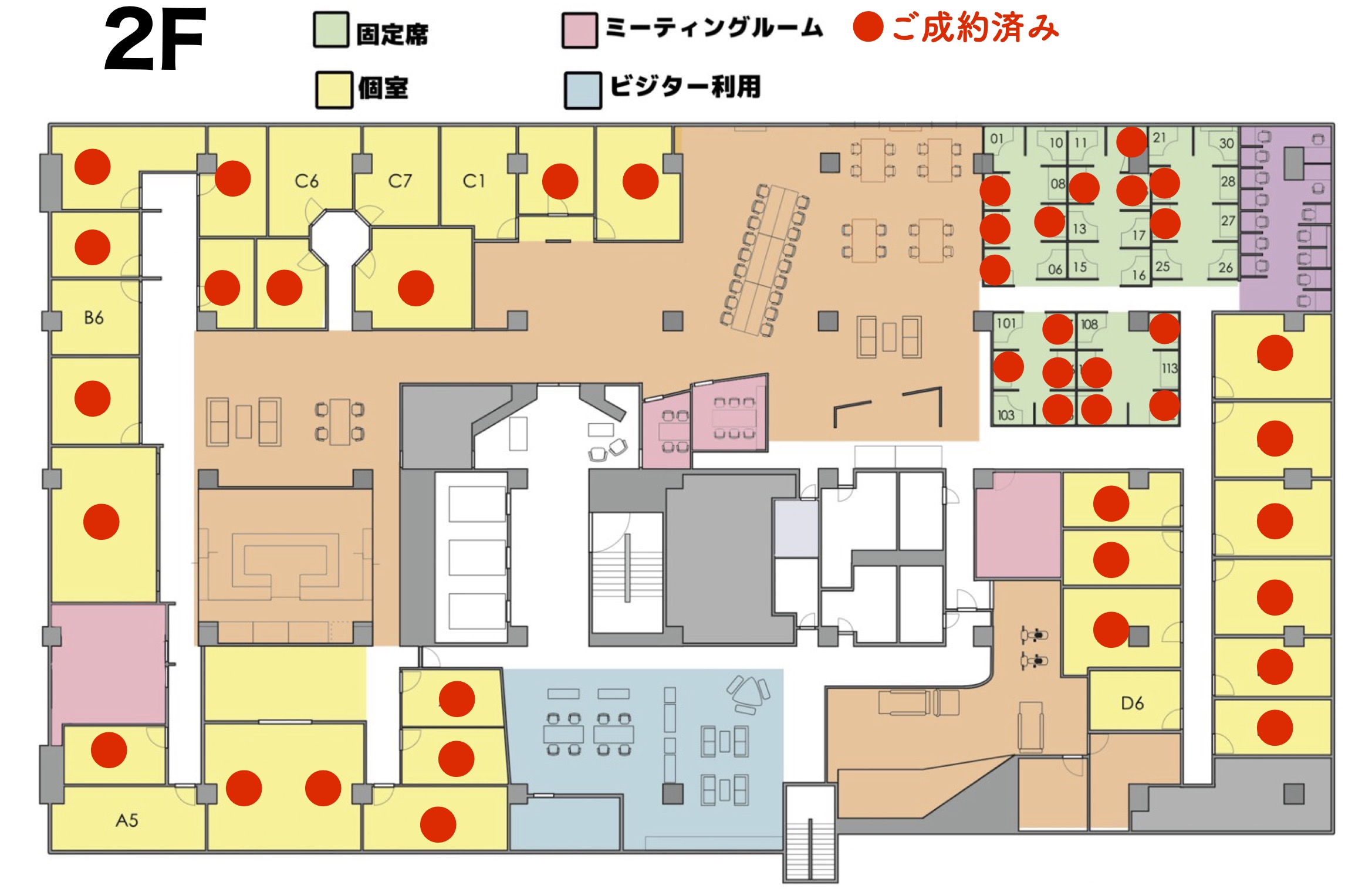 個室/固定席空き状況マップ 更新日2025/12/10 法人/個人の事務所や勉強部屋にご利用できます。最新の空き情報は受付までお問い合わせください。 現在おすすめの空き個室はこちら 料金等の詳細は受付スタッフまでお尋ねください。
